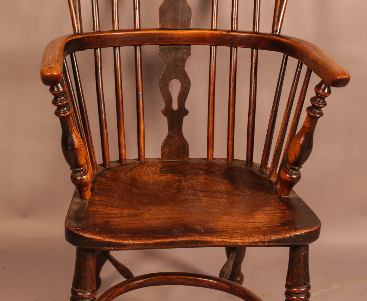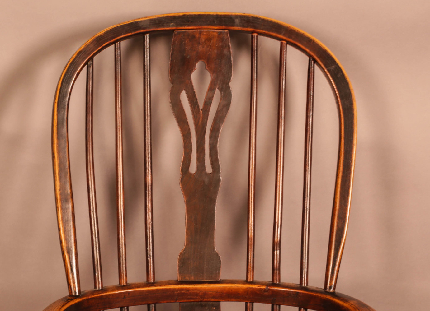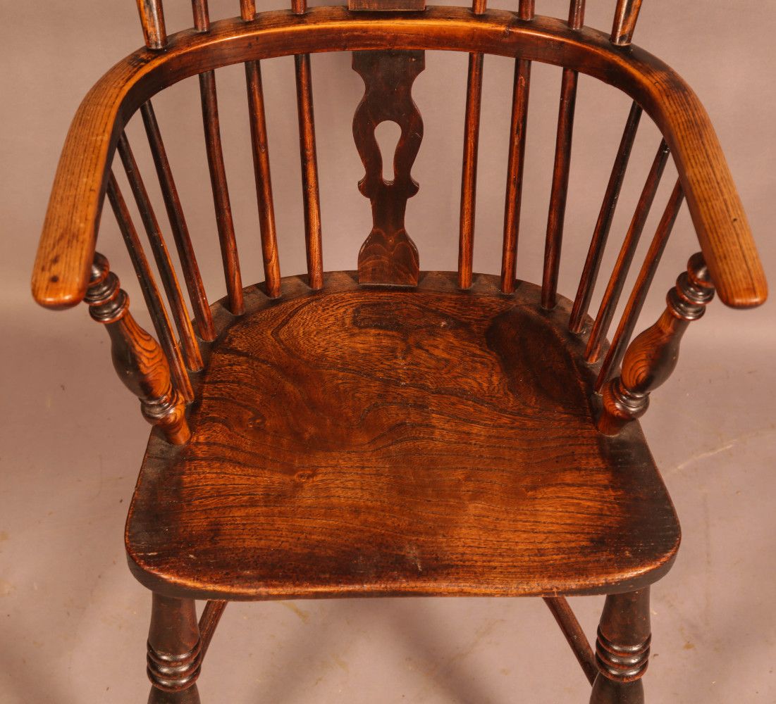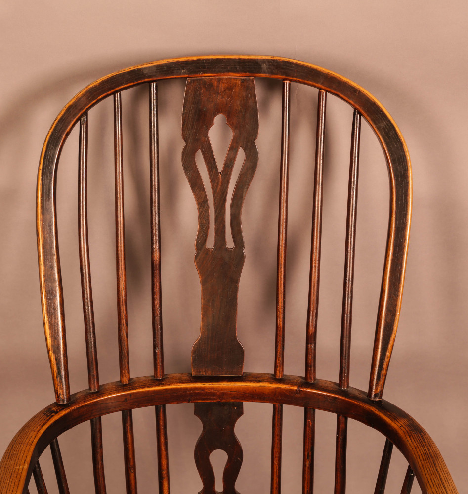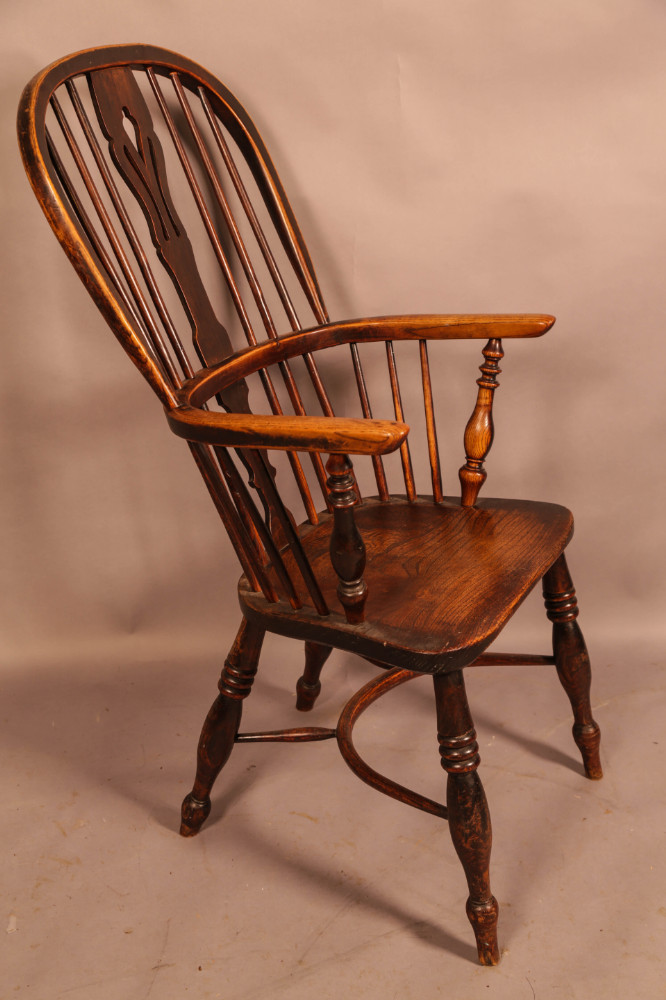 A Lovely Ash and Elm High Back Windsor chair by Fred Walker, it has the crinoline stretcher, Fred was making Windsor chairs from a Workshop in the tiny hamlet of Rockey just south of Retford in Nottinghamshire for almost 50 years. this chair is in excellent condition it has a wonderful colour and patina absolutley untouched, the seat is stamped on the right hand side.