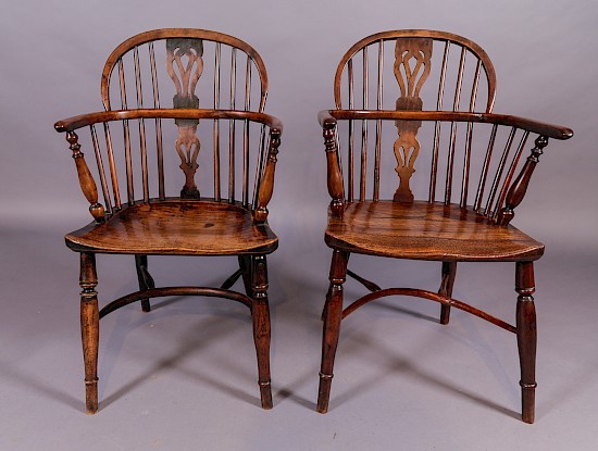 A Pair of William Wheatland Retford Windsor Chairs in Yew