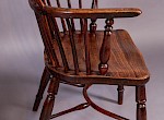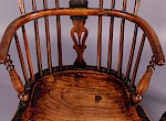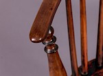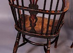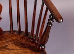 A Good Pair of Windsor Chairs in Yew wood with Elm Seats by William Wheatland, these chairs would have been made while William was working from the town of Retford before his move to Rockley to set up a workshop and build a Methodist chapel there, they have the crinolin stretchers and a scratch carved line around the edge of the seat and back hoop, also the back spindles are mortised right through the seat Williams hall mark for Retford made chairs.