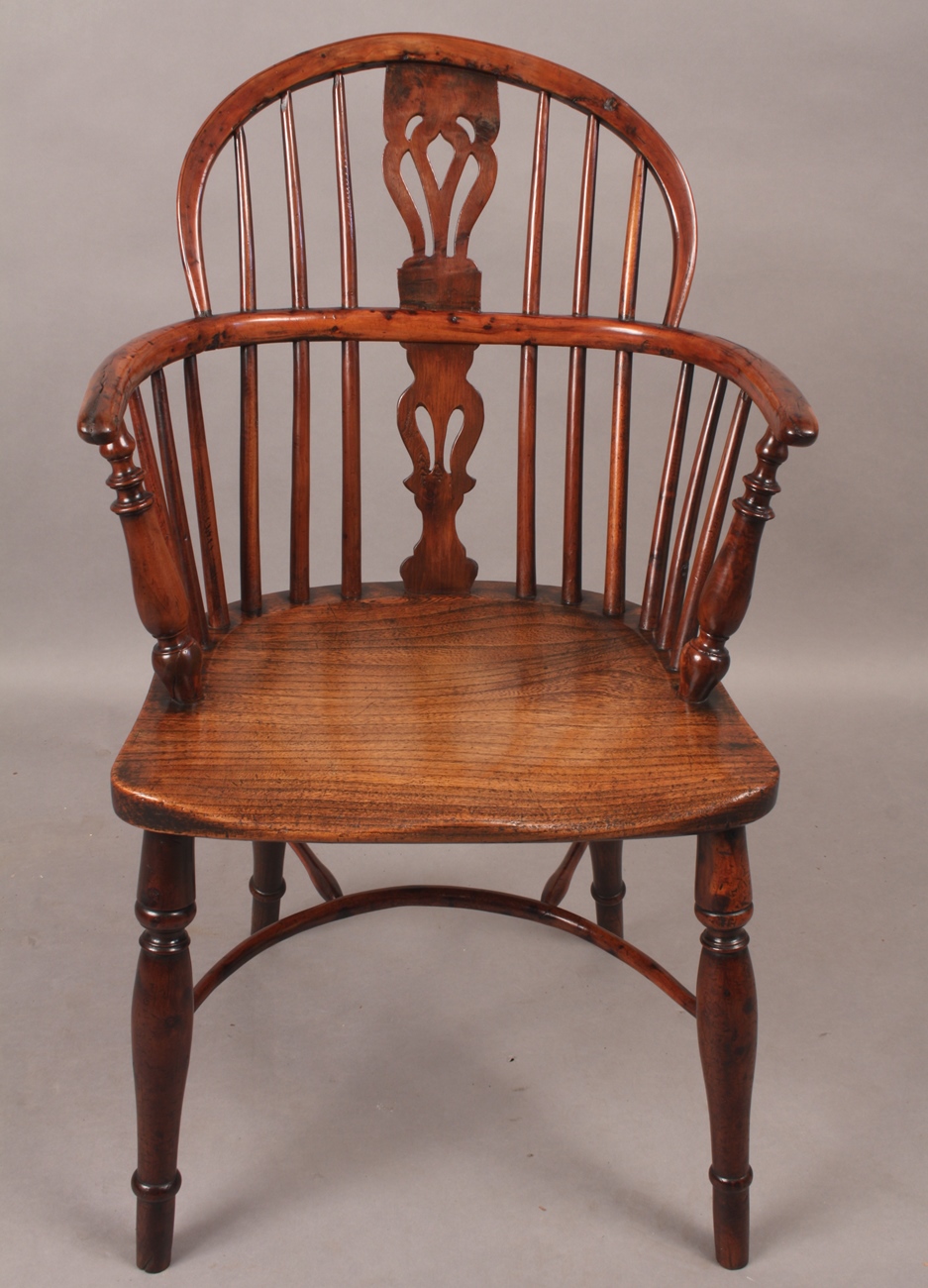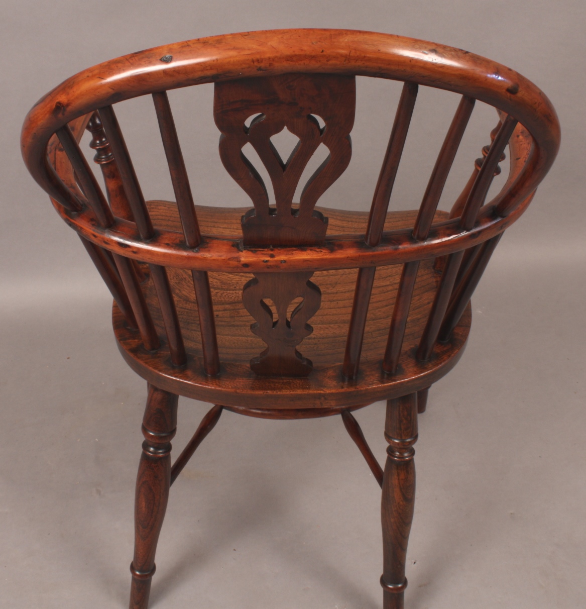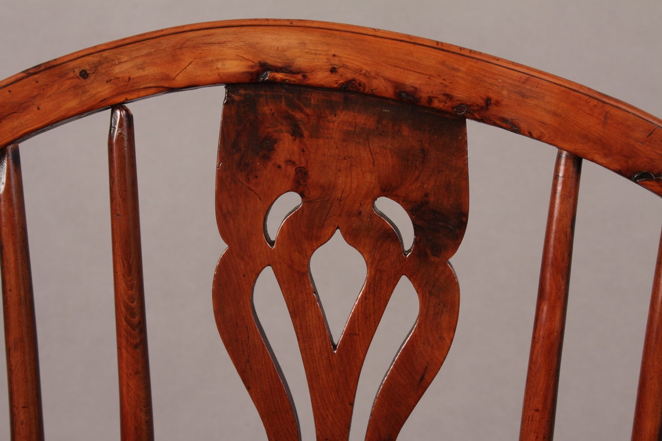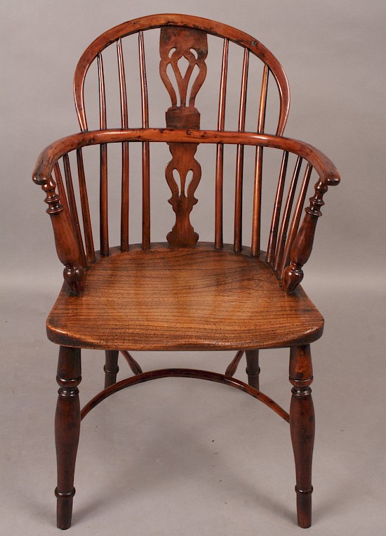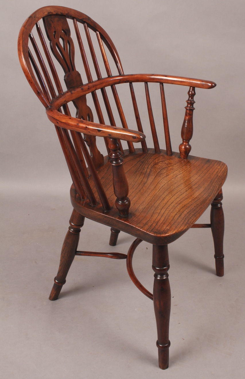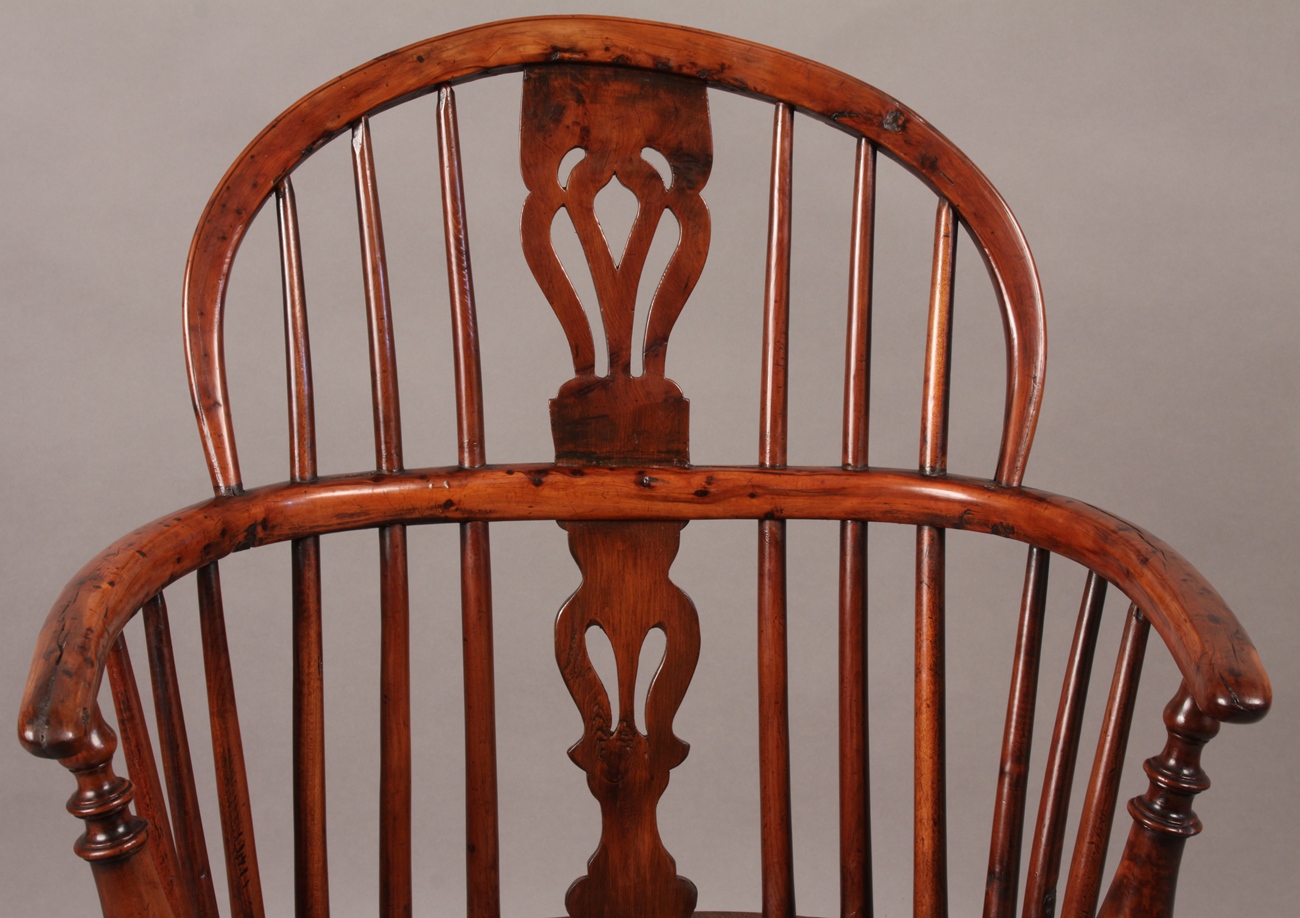 A Rare Yew Windsor Chair by William Wheatland, in Excellent condition with a good colour and patina. William Wheatland was from Retford he moved to Gamston in about 1822 then Rockley in about 1825, he was the first chair maker in the tiny village of Rockley he was also a Methodist preacher who built a small chapel in the village but this overstretched his finances and in 1830 he went bankrupt , The workshop was taken over by George Nicholson another important Windsor chair maker who stayed for about ten years. Fred Walker then carried on for the next 30 years, between these three men and there assistants many fine Windsor chairs were made over a period of 50 years,