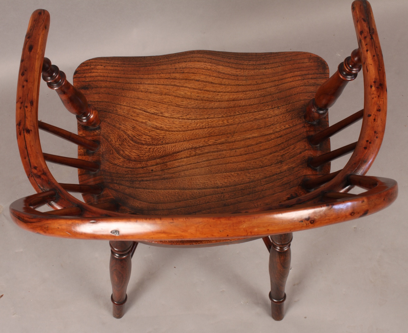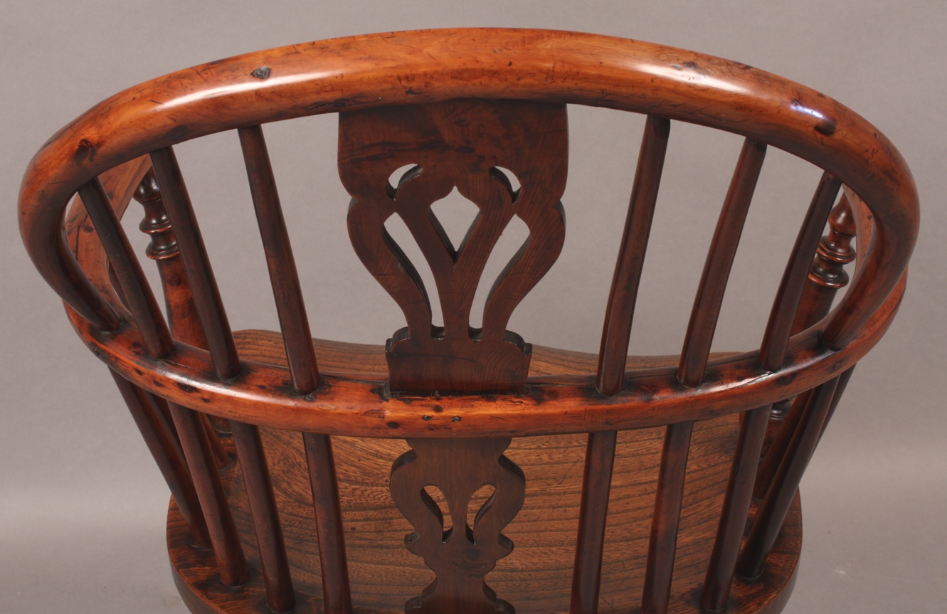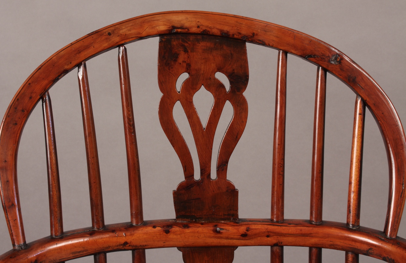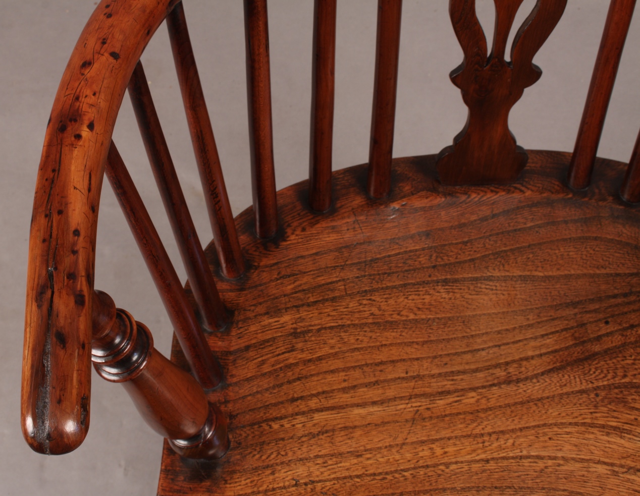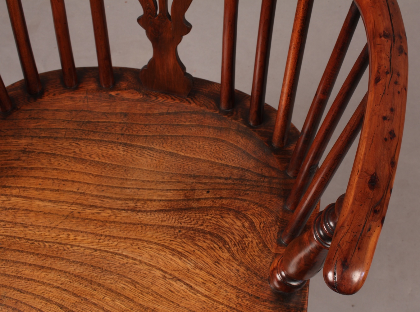 A Rare Yew Windsor Chair by William Wheatland, in Excellent condition with a good colour and patina. William Wheatland was from Retford he moved to Gamston in about 1822 then Rockley in about 1825, he was the first chair maker in the tiny village of Rockley he was also a Methodist preacher who built a small chapel in the village but this overstretched his finances and in 1830 he went bankrupt , The workshop was taken over by George Nicholson another important Windsor chair maker who stayed for about ten years. Fred Walker then carried on for the next 30 years, between these three men and there assistants many fine Windsor chairs were made over a period of 50 years,