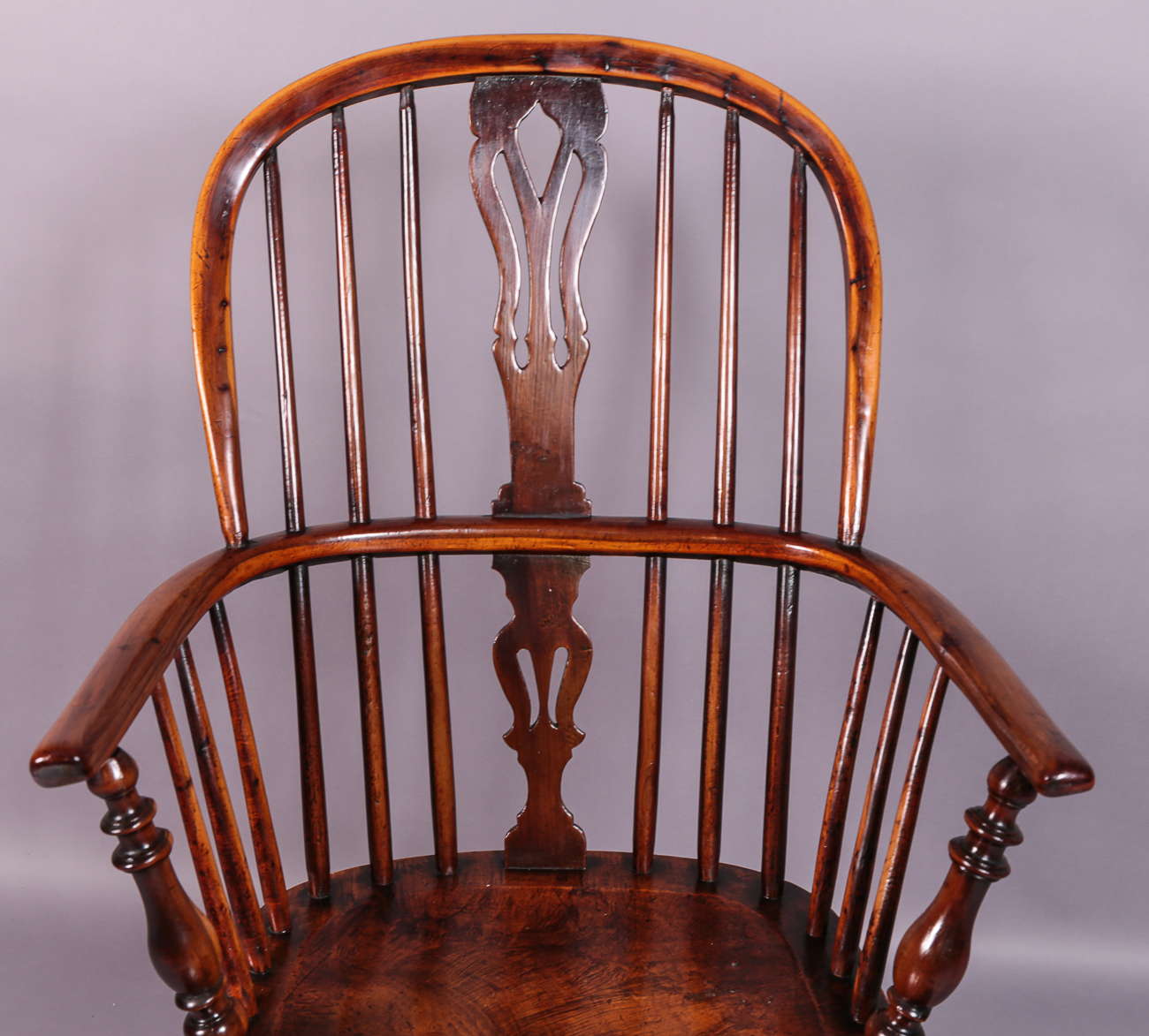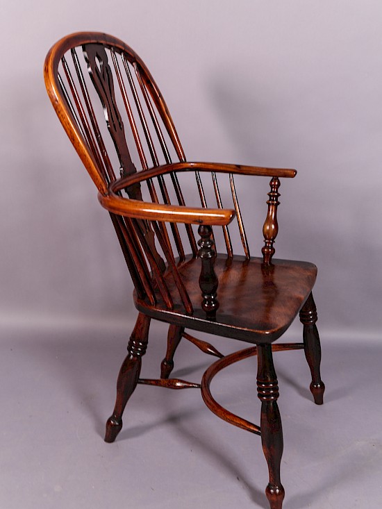 A Good High Back Windsor Chair in Yew Wood with an Elm seat, The condition is Excellent with a lovely colour and patina, no loose joints or damage, this is probably a chair made in Nottinham Shire in the village of Rockley by George Nicholson or Fred Walker it bears all the hall marks of these makers.
