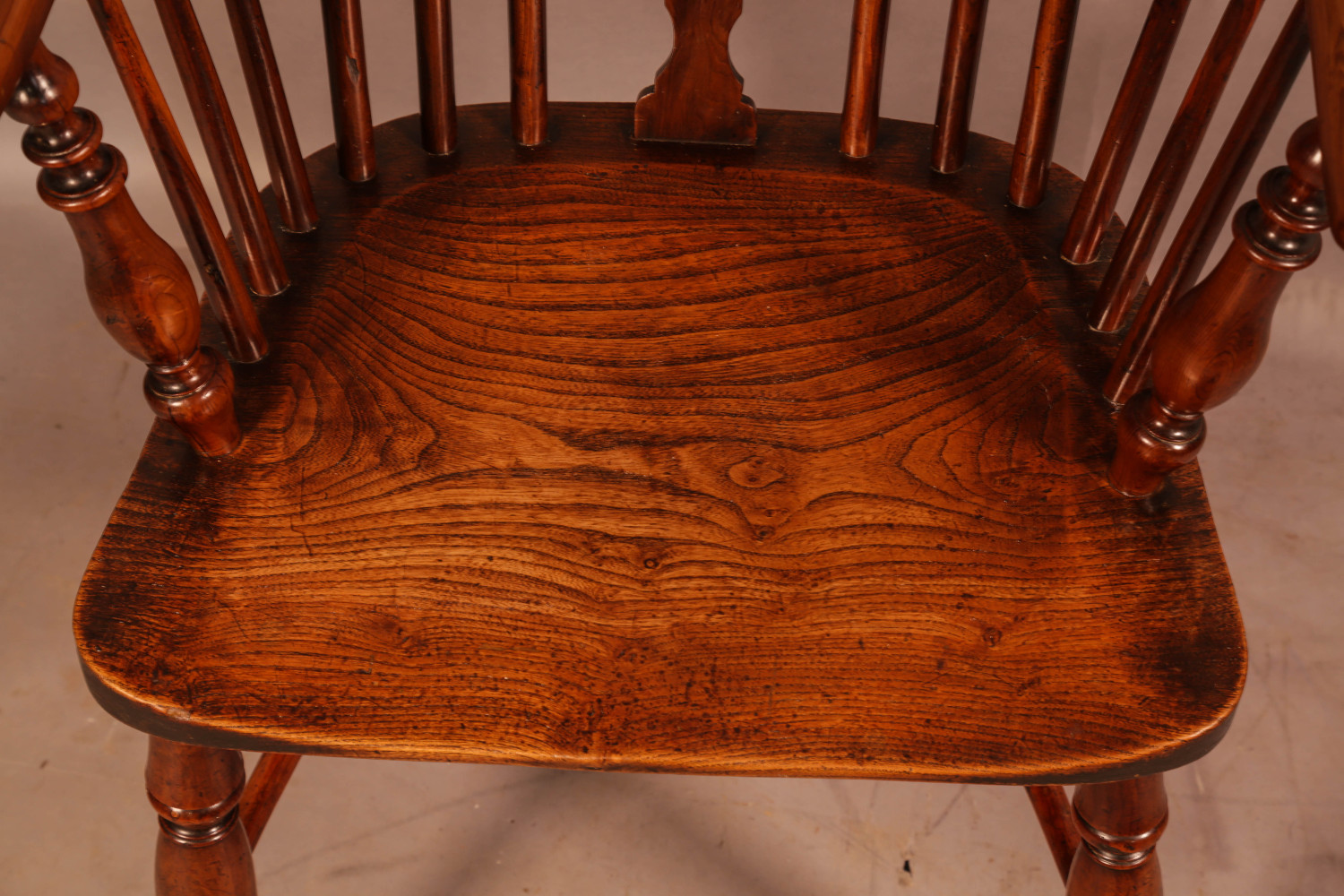 Another super Low Back Windsor Chair in Yew with an Elm seat Made in the village of Rockley in north Nottinghamshire, it has the crinoline stretcher the legs have a single turned ring some have three turned rings. This chair will have been made by the famous chair makers Fred Walker or George Nicholson. The condition is excellent and it has a super colour and patina