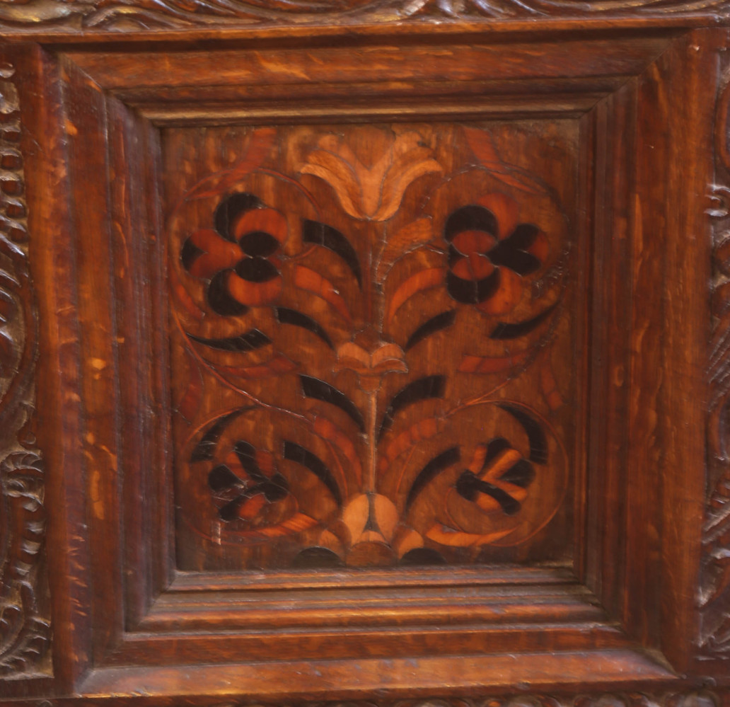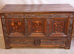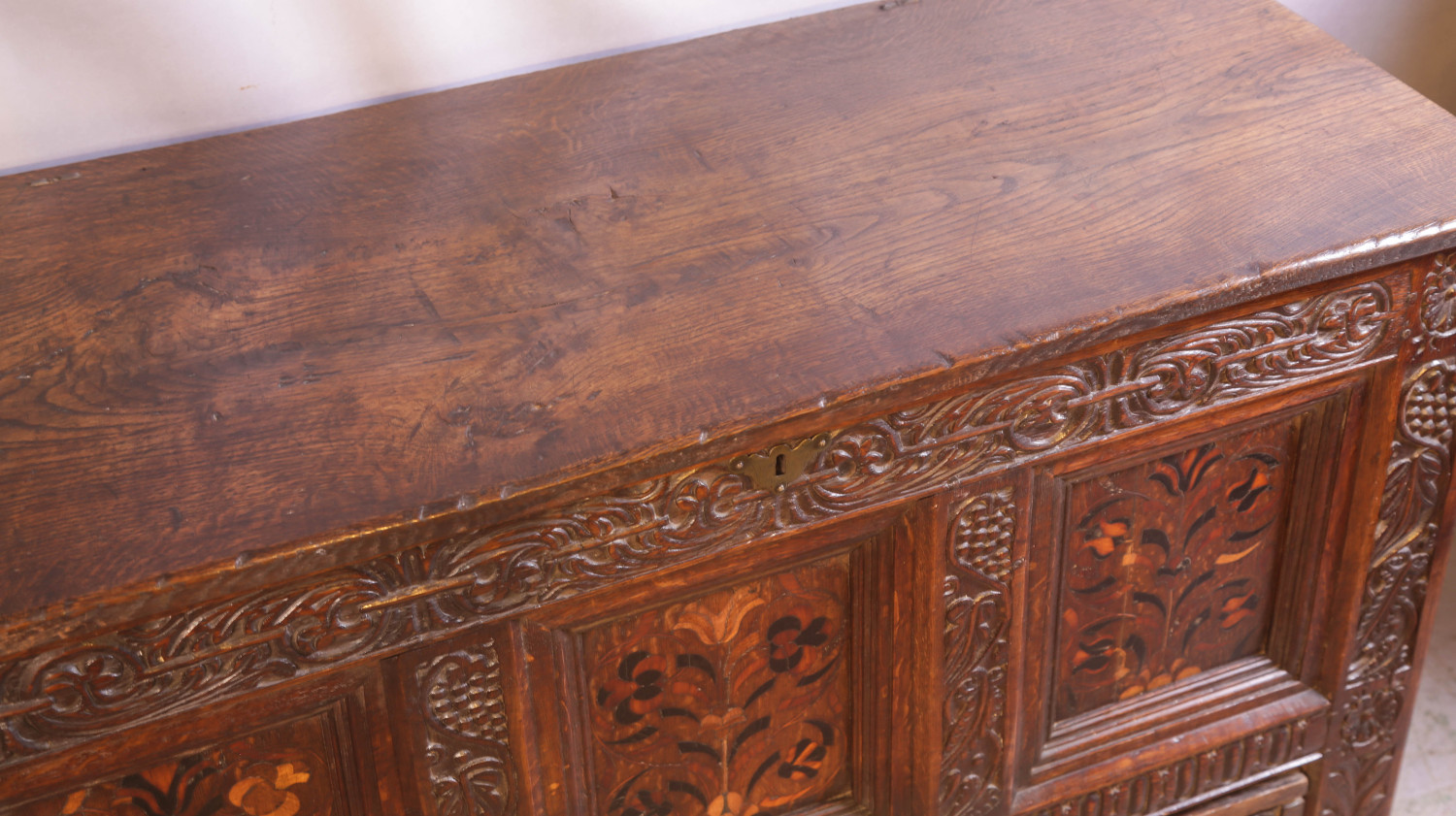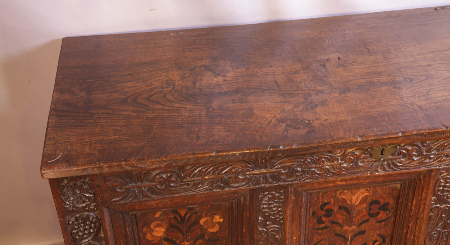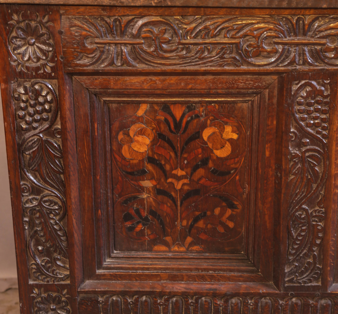 A Very Rare large Oak coffer with inlaid panels Leeds area