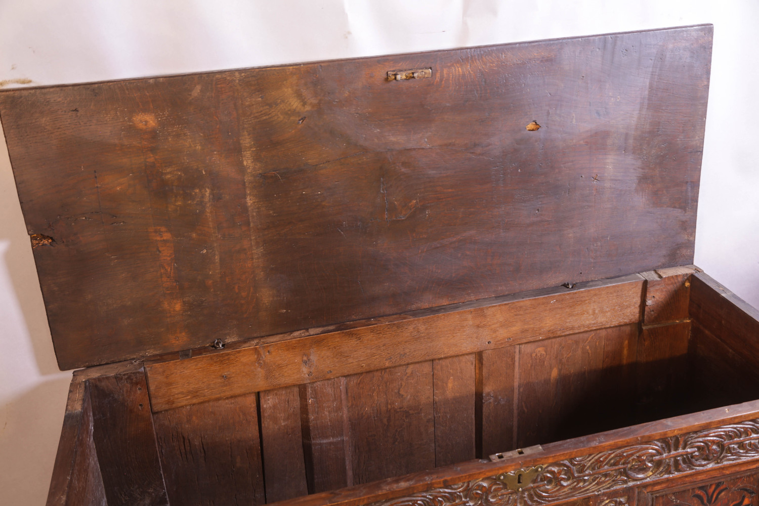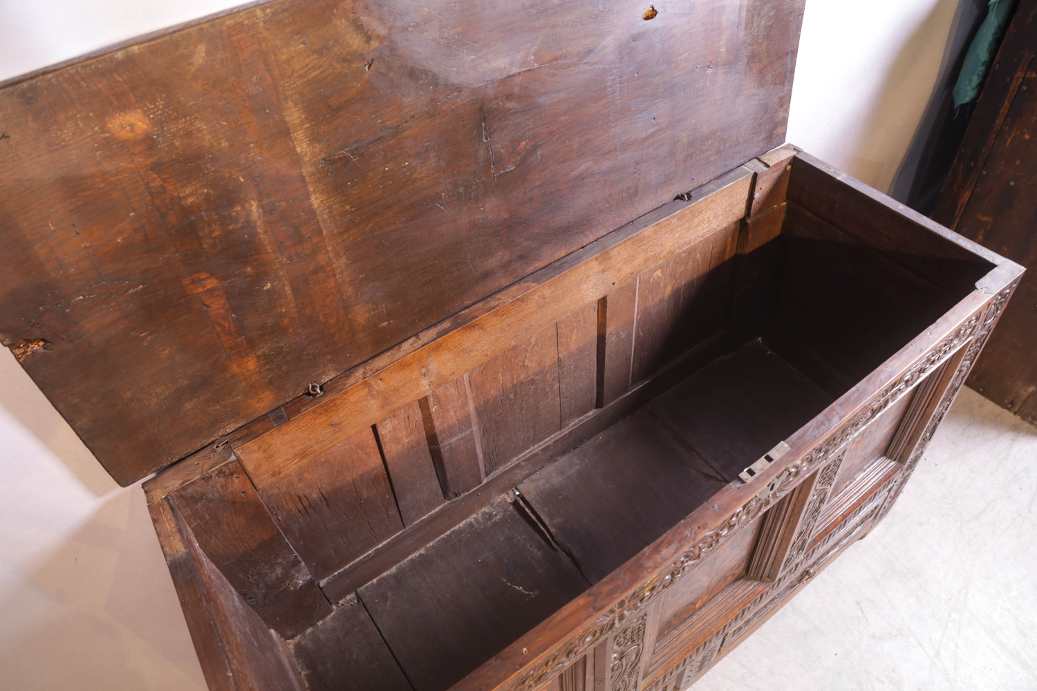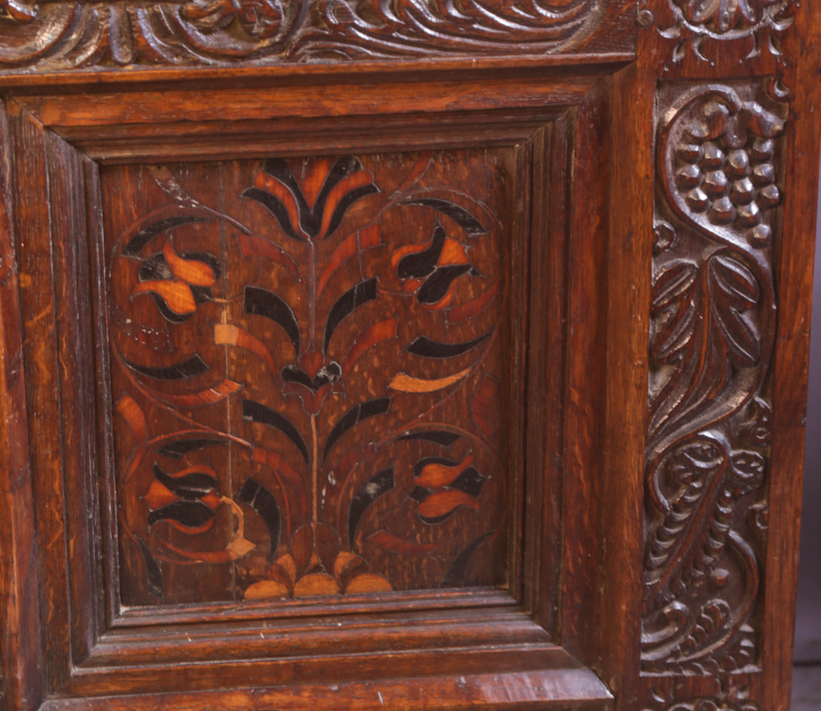 A Very Rare large Oak coffer with inlaid panels Leeds area