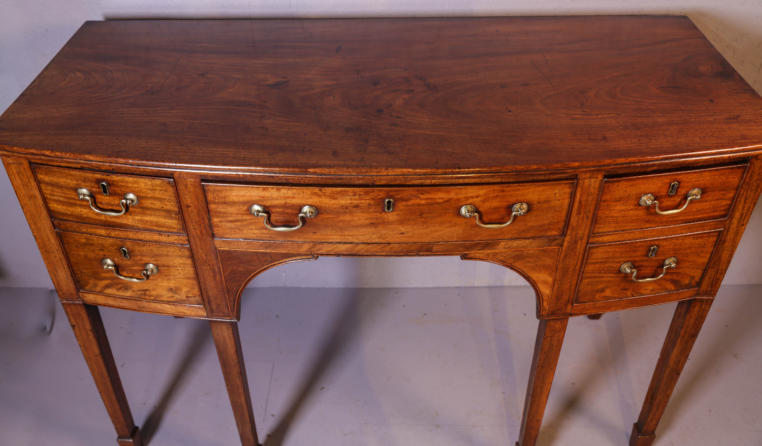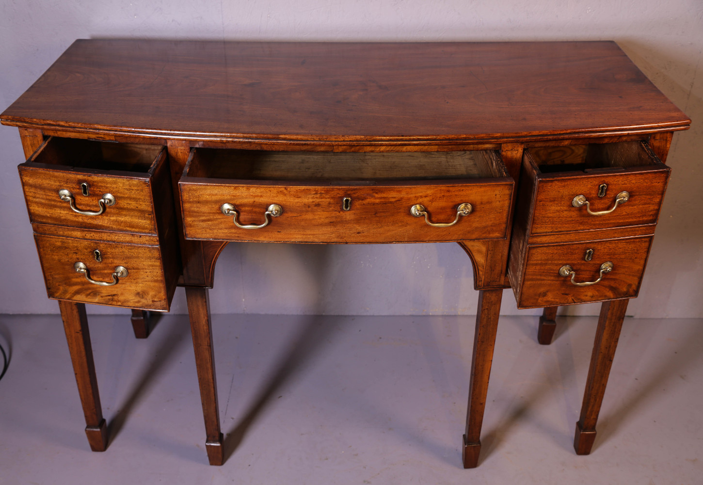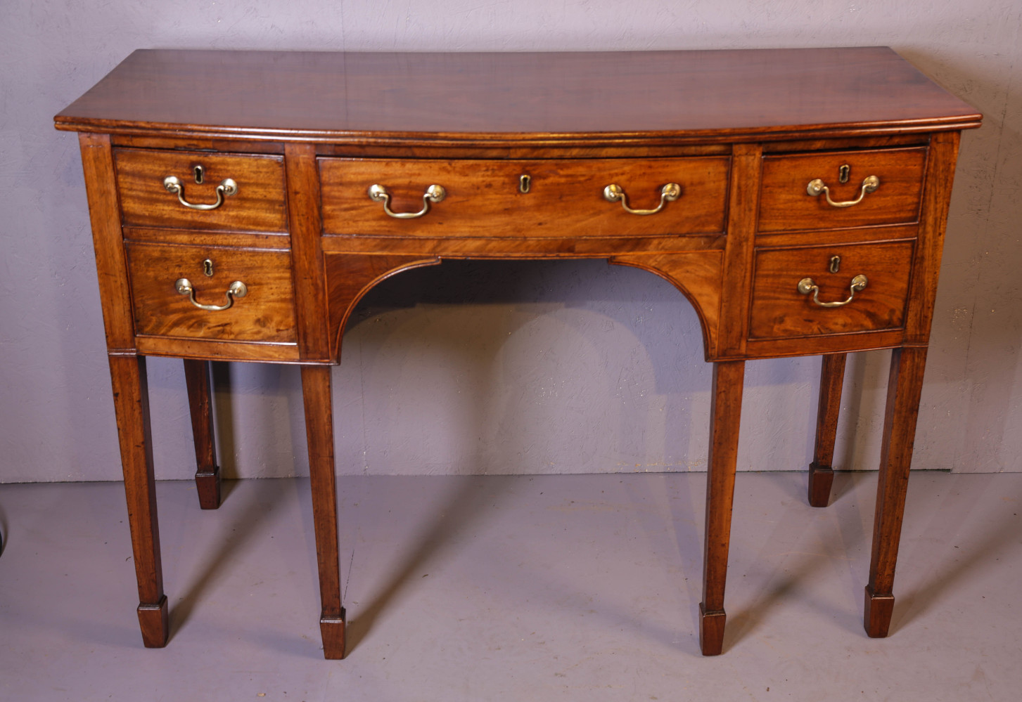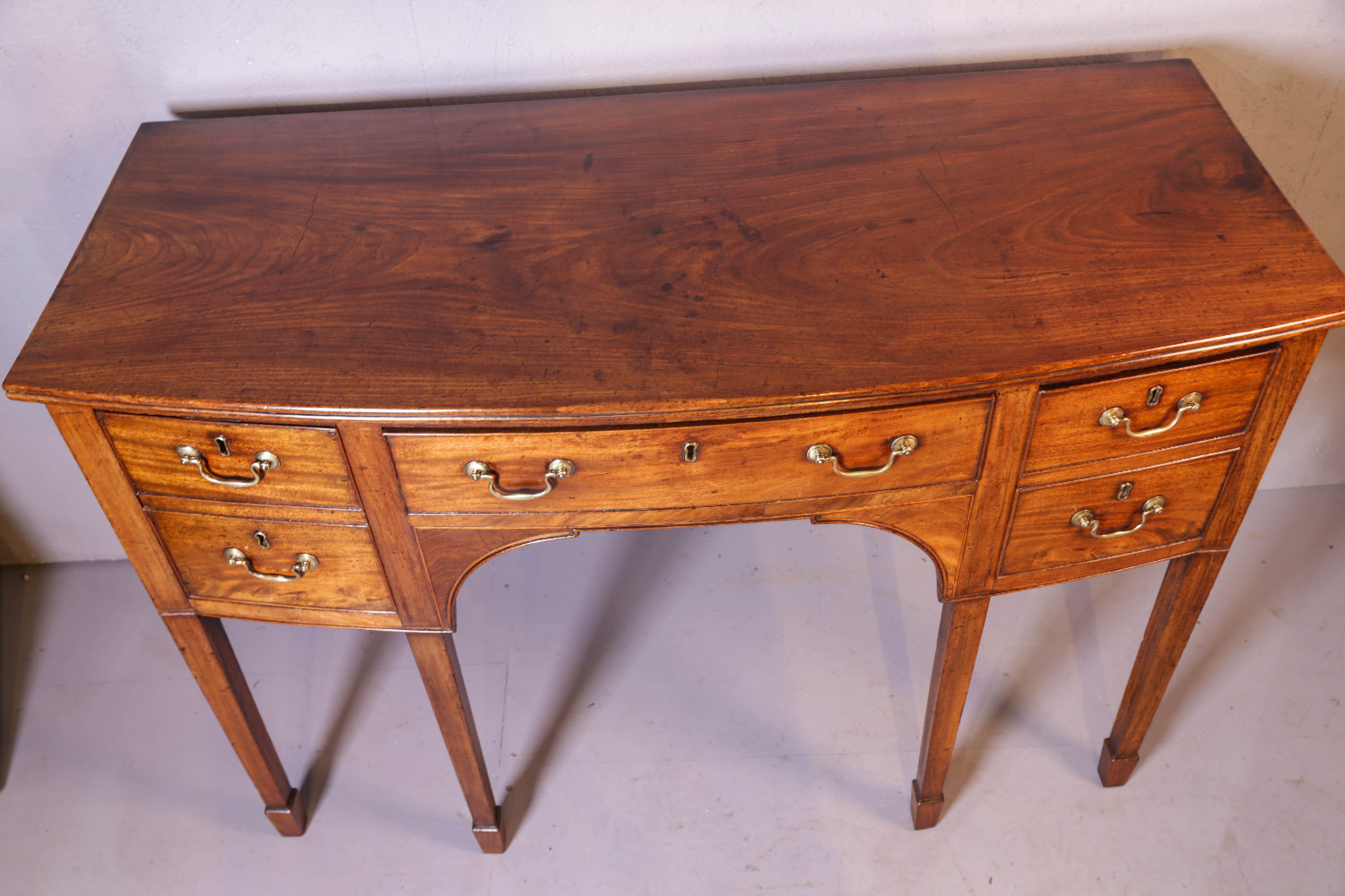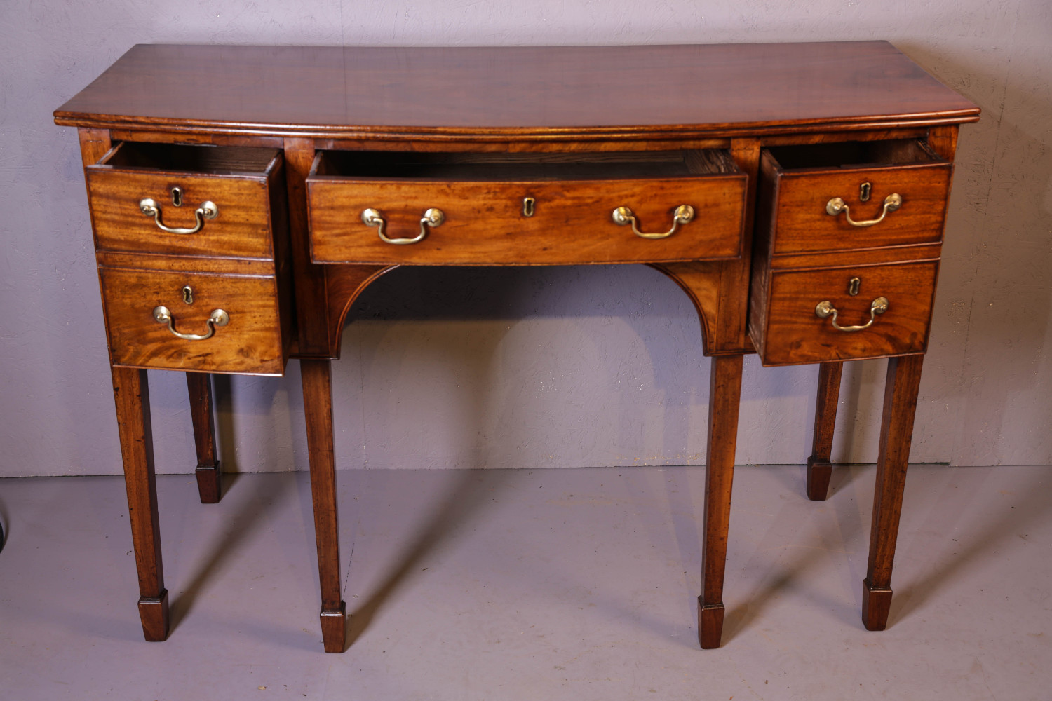 A Lovely 18th century Mahogany sideboard it has one central drawer and two outer drawers one either side these have drawer fronts that show as if they are two drawers each side. this item is all original and has a Very pleasing colour and patina, it is also quite small