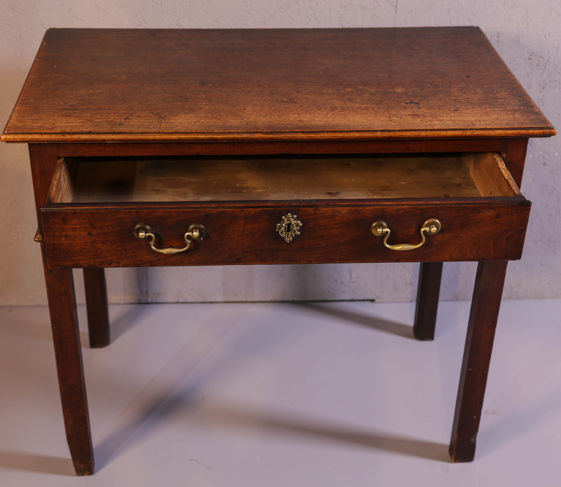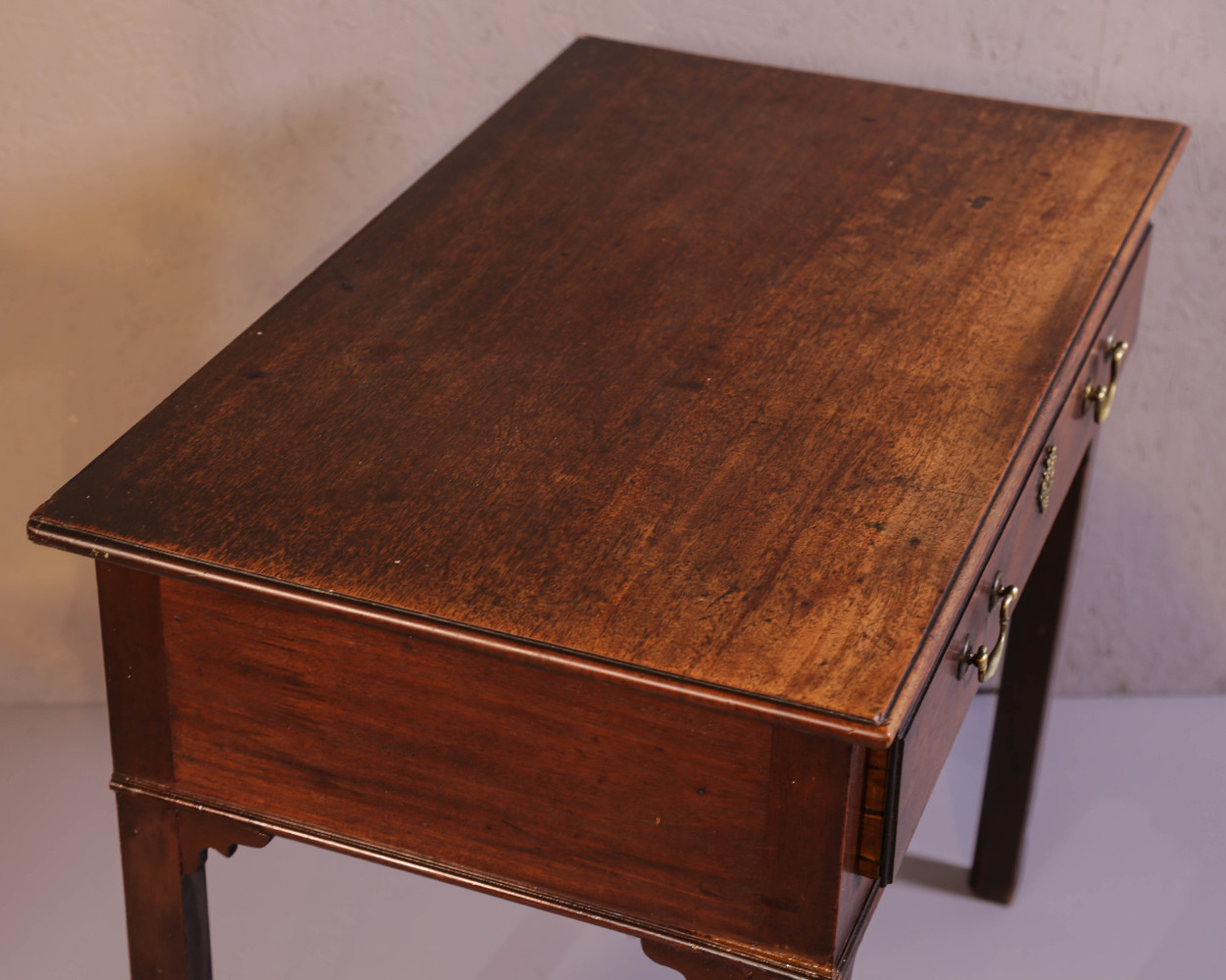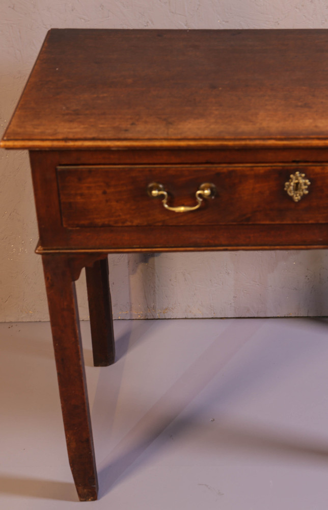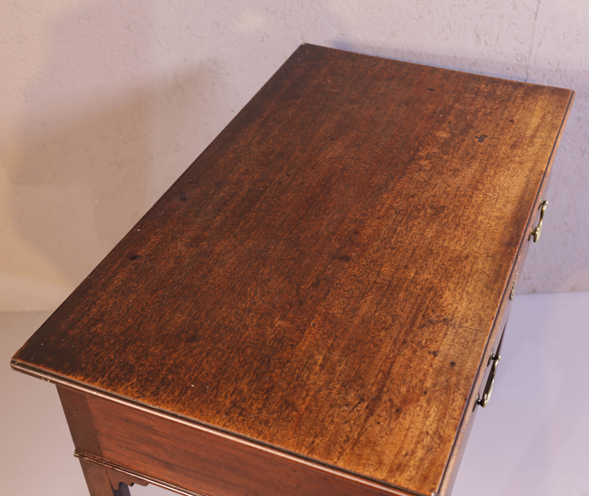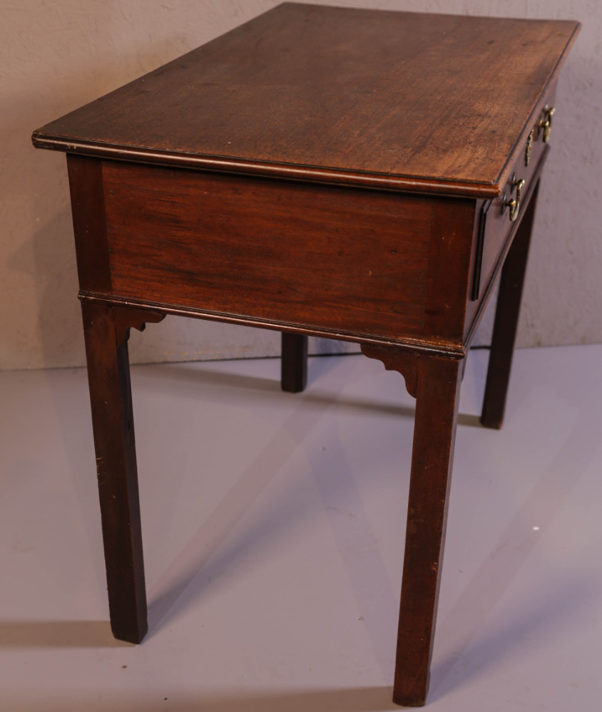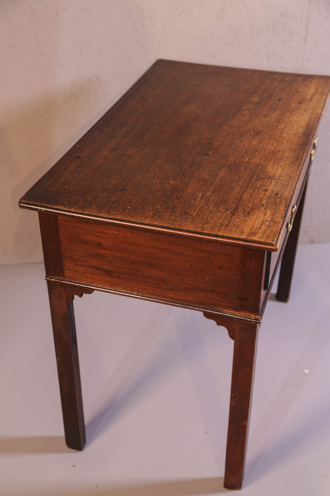 An Attractive 18th century side table in Mahogany, it has streight legs with small shaped brackets to the tops of the legs ,the brass ware is original, it have never been stripped or cleaned so retains a lovely colour and patina