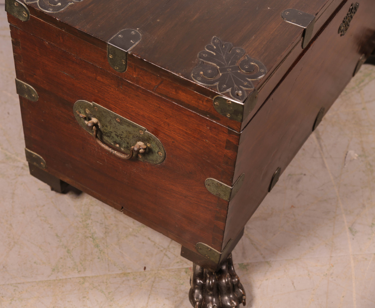 An early 19th century Silver chest in mahogany, it has a monogramed plaque on the top the top and sides are re enforced with metal mounts so obviousley made to carry about maybe on Campaignes, it has a lock and key and a lift out tray. The condition is very good.