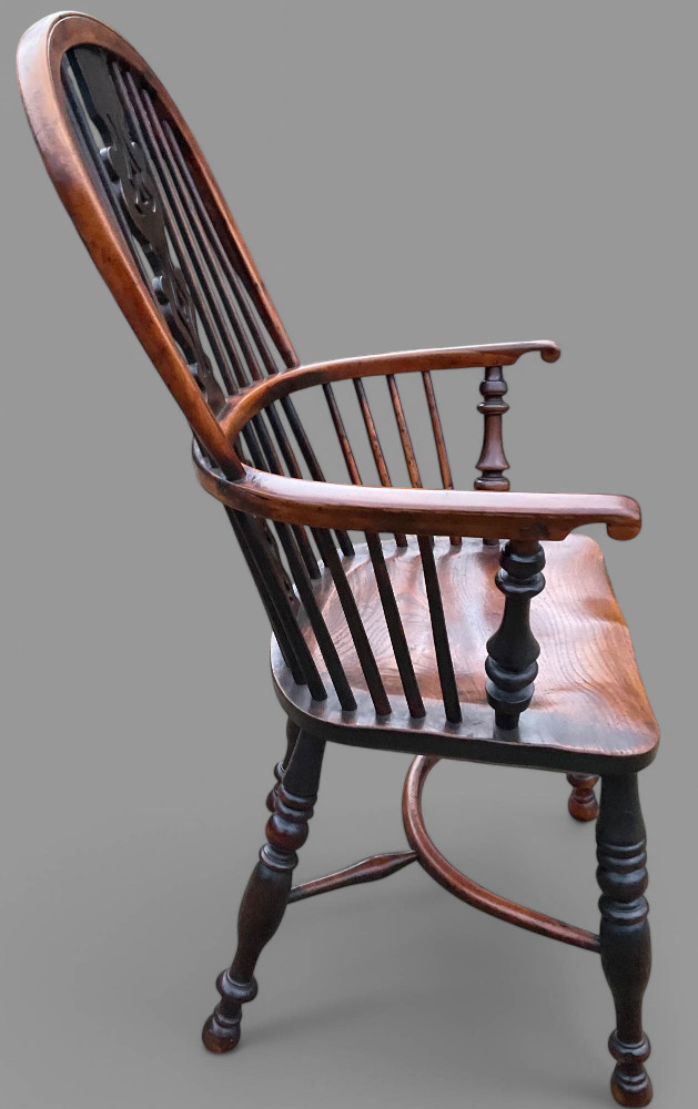 A super high back Yew wood Windsor chair by Gabbitass of